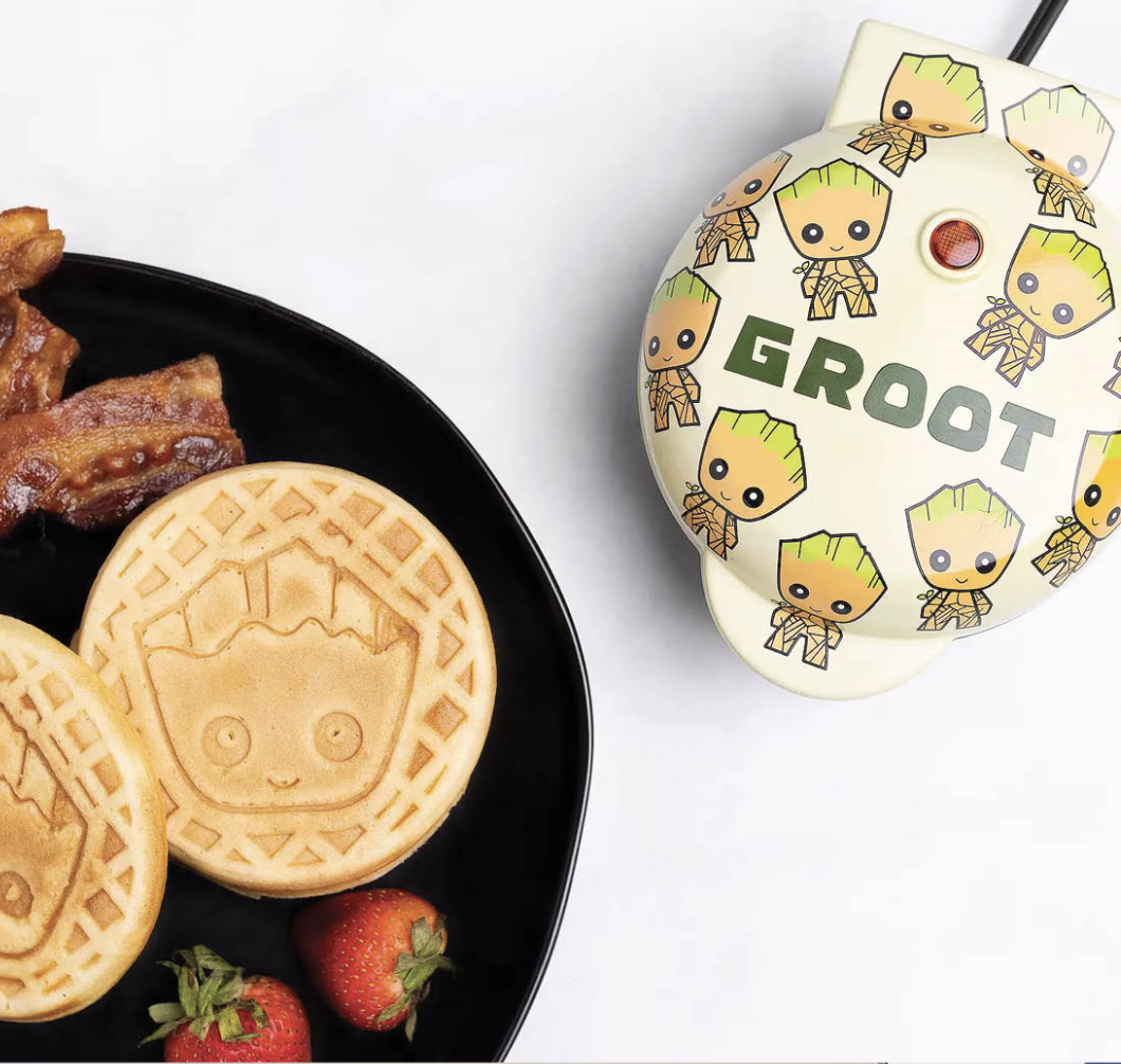 The Groot artwork on the lid of this Marvel Eat The Universe Groot Mini Waffle Maker is sure to bring fun to any kitchen landscape.