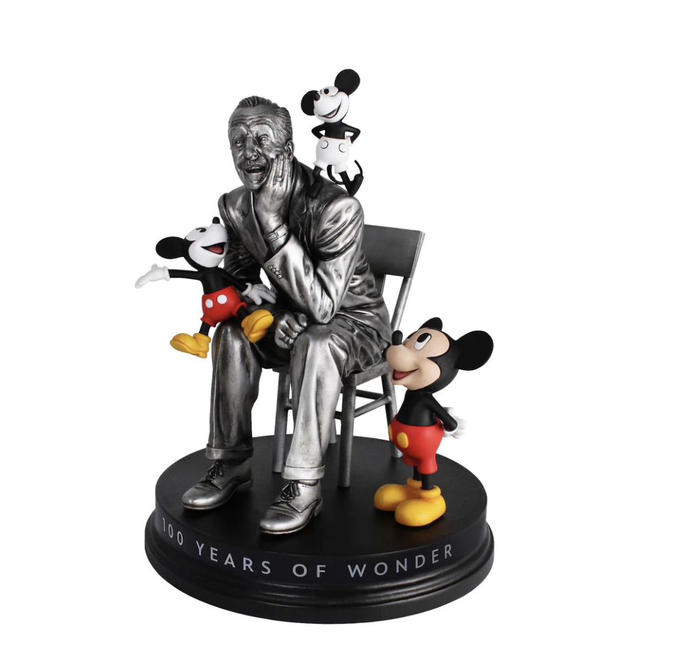 Wonder in the 2023 Centennial year with this commemorative statue of the venerable innovator himself, Walt Disney, with Mickey Mouse in iconic roles throughout the century.